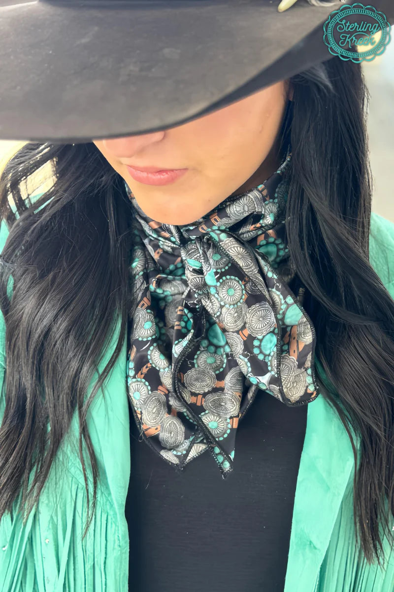 Add some flair to your outfit with the Buckle Up Wildrag! This unique design features conchos and buckles, making it a statement piece. Keep your neck warm and stylish with this wildrag. (Buckle up for compliments!)