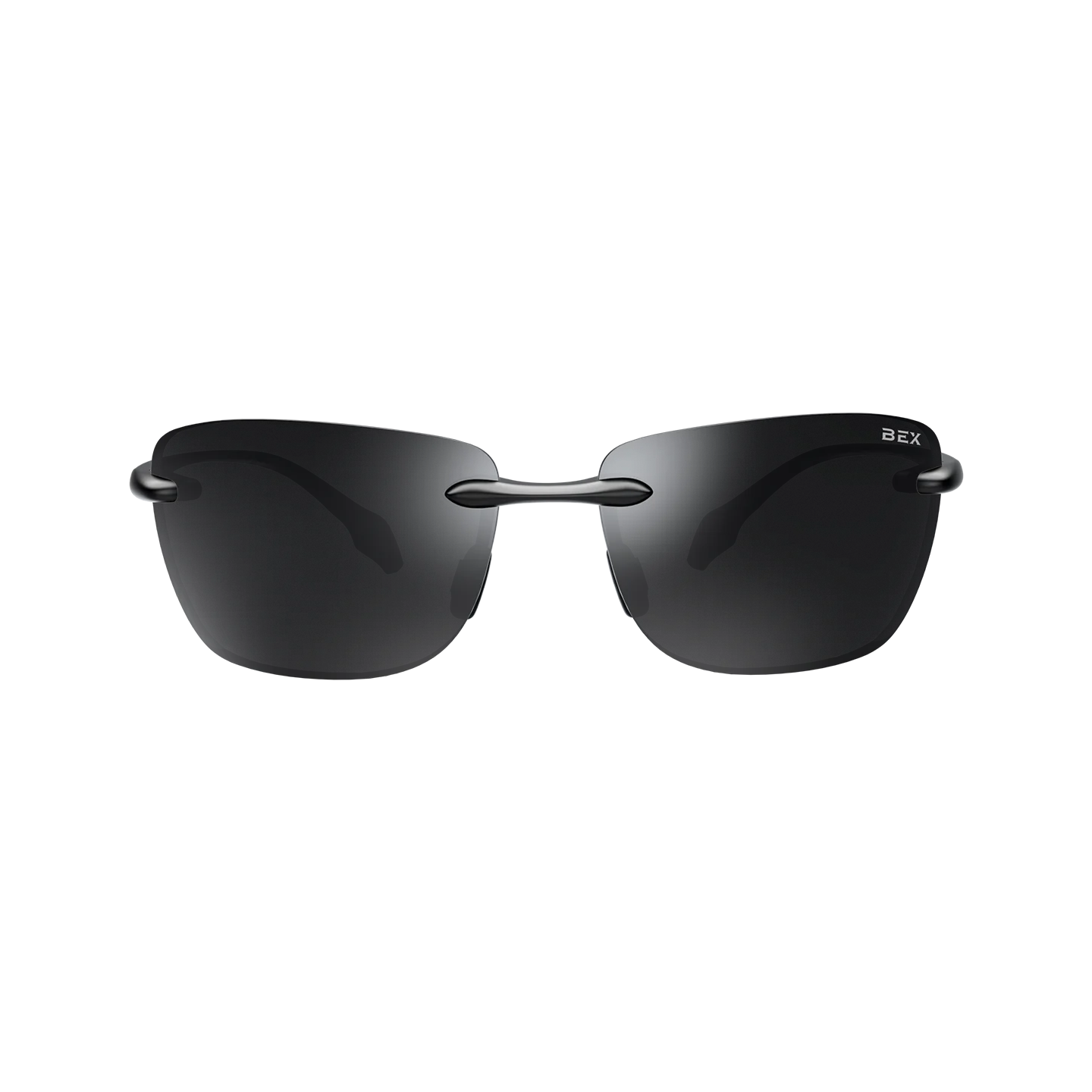 - Black/Gray (S38BGS) - Frameless sunglass with glossy black thermal plastic parts, and nose bridge with soft black nose pads.