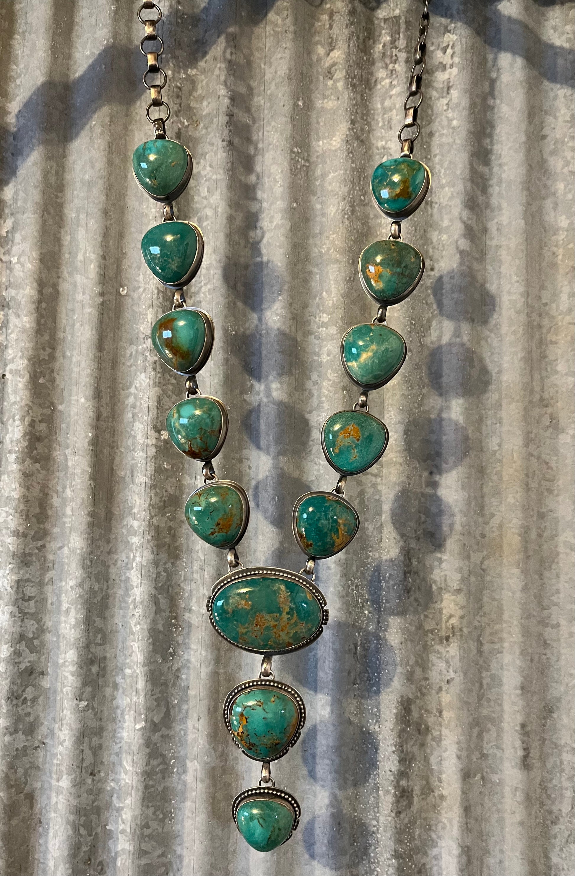 This stunning Sonoran Gold Lariat necklace is a true statement piece. Featuring a large gold stone and a 40 inch chain, it is both eye-catching and versatile. Hand-signed and stamped as genuine, this necklace will make a beautiful addition to any jewelry collection. Shipped with insurance for peace of mind. CLOSING LOBSTER CLASP FOR ADDED SAFTEY.