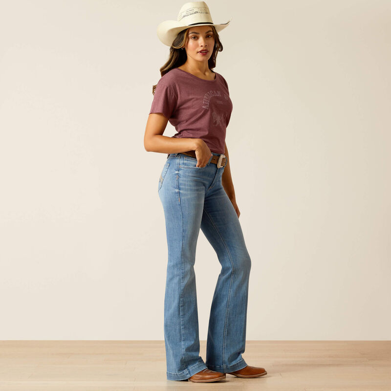 With a slight flare, high waist, and earth-toned stitching on the back pocket, this trouser jean is giving us '70s vibes. Lean in by pairing it with a crop top or tie-front button-up.