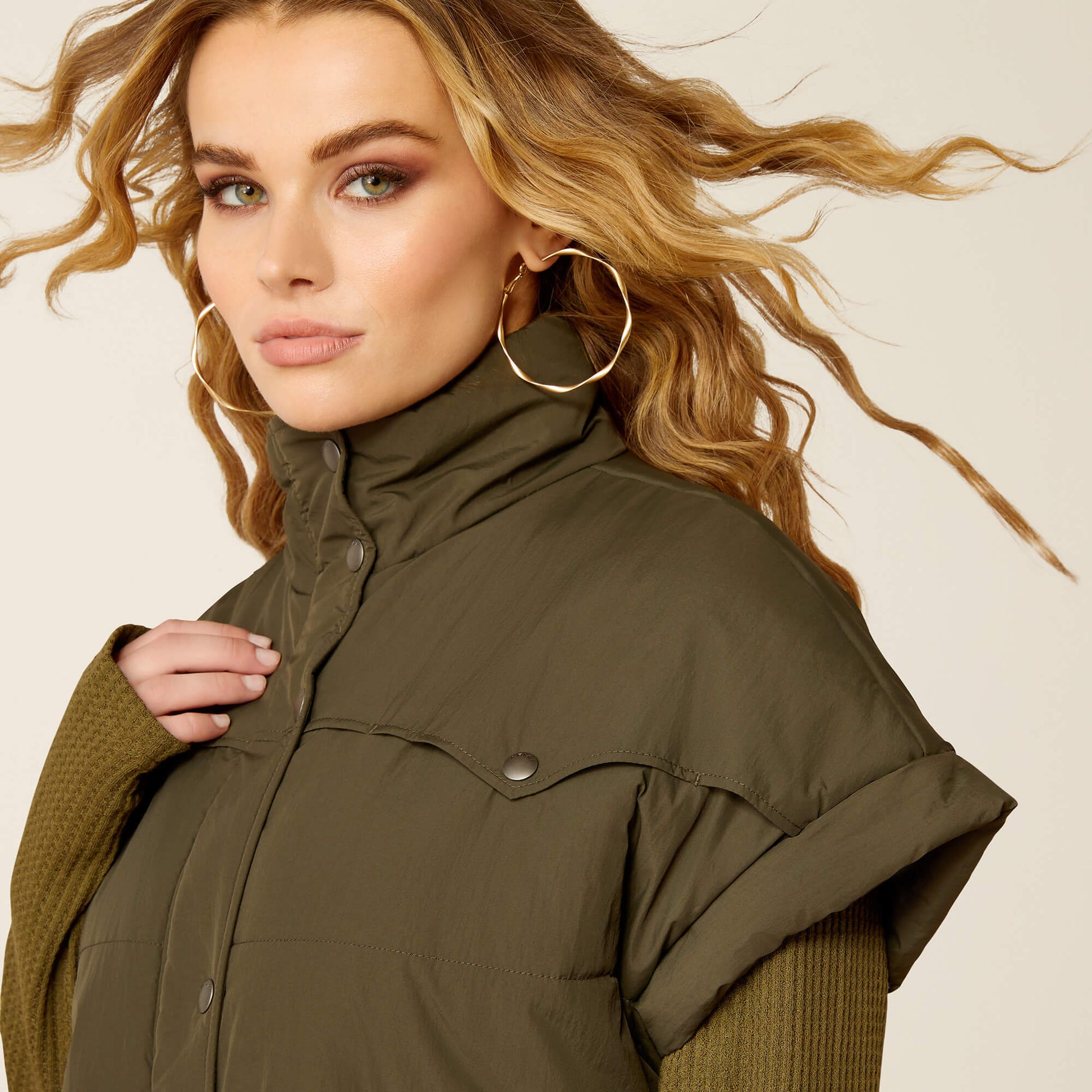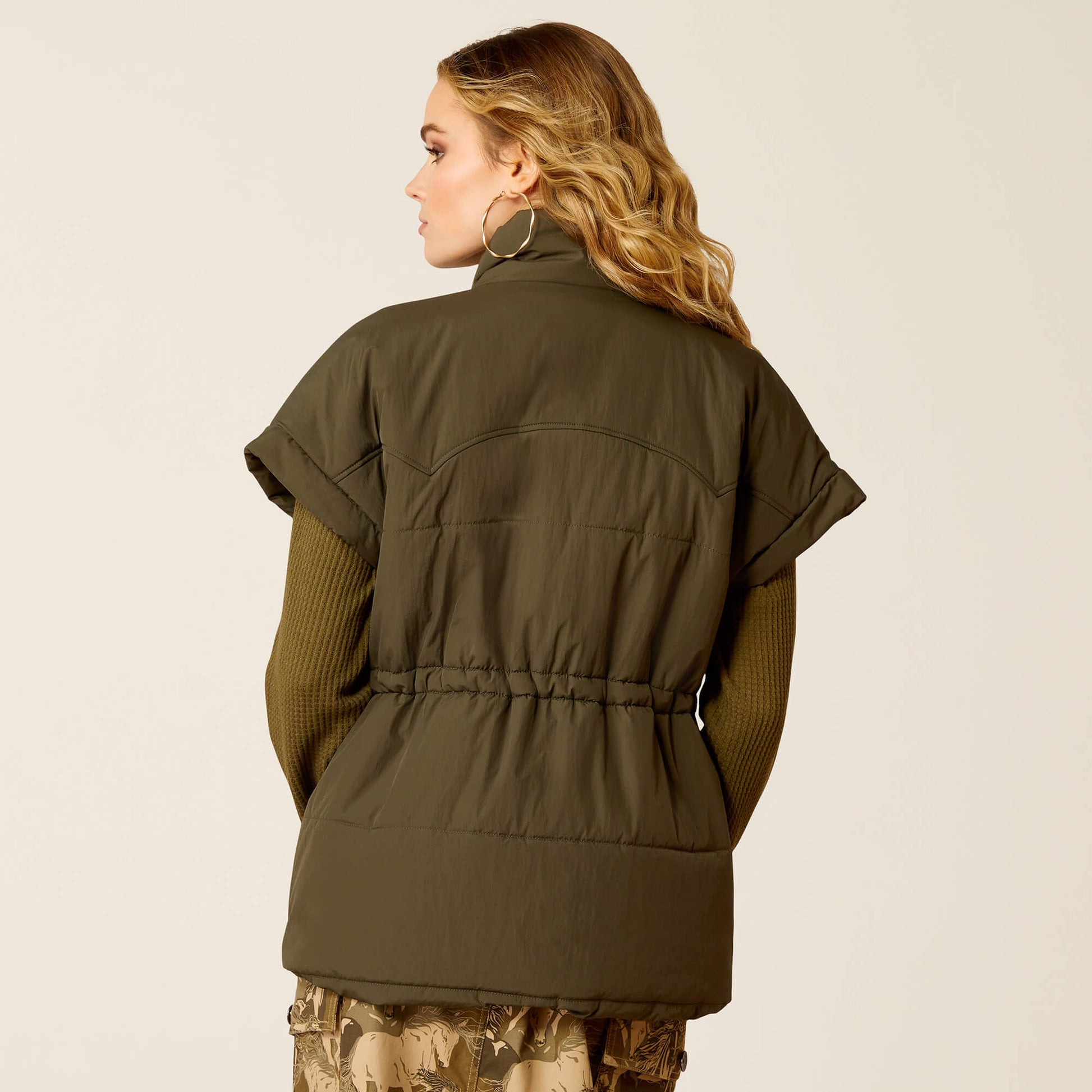 This super-soft oversized vest is both practical and stylish. Water-resistant with a cinchable waist, it can fend off surprise showers or add utilitarian style to your wardrobe.