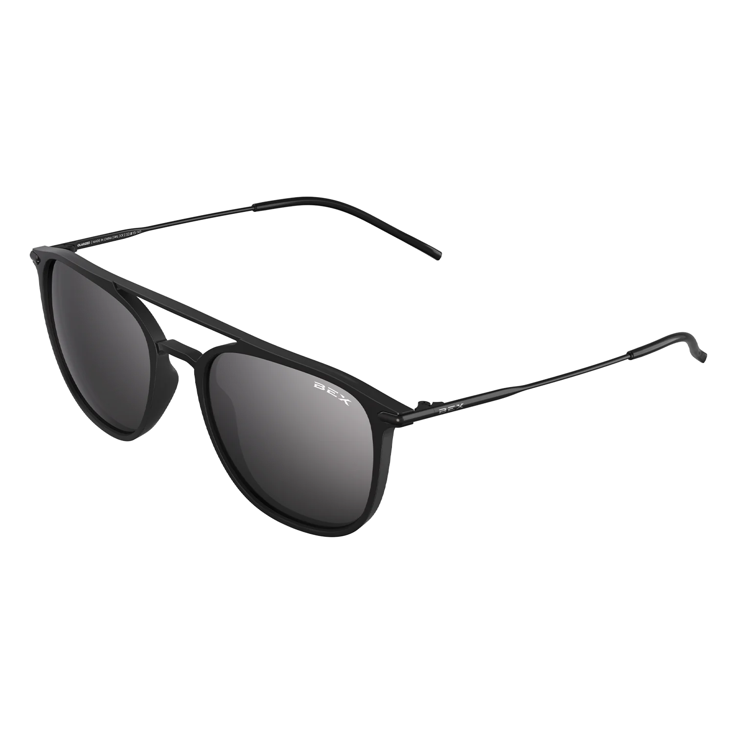 - Black/Gray (S45BGS) - Matte Black front frame and glossy black back TR90 frame with glossy black stainless steel temples. Fitted with a Live Gray tinted lens and a BEX Slash coating.