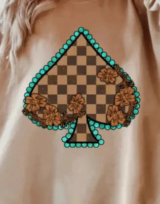 The Spade Graphic Tee is perfect for those looking to elevate their casual style. Made with the highest quality Gildan tan tee, its cute graphic design will add a touch of personality to any outfit. Comfortable, stylish, and made to last, this tee is a must-have for any fashion-forward individual. T-SHIRT