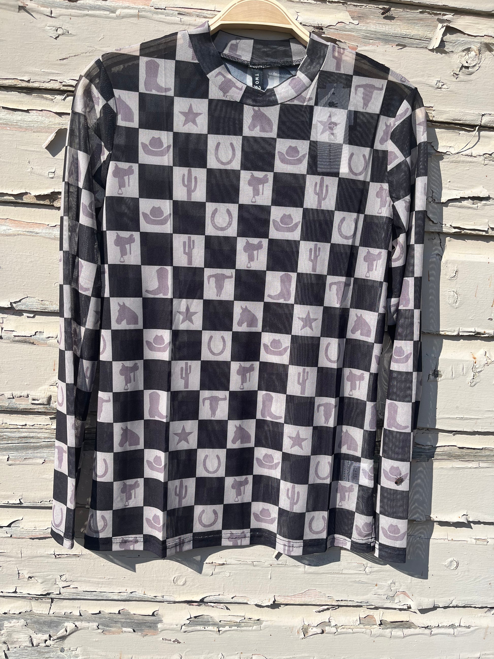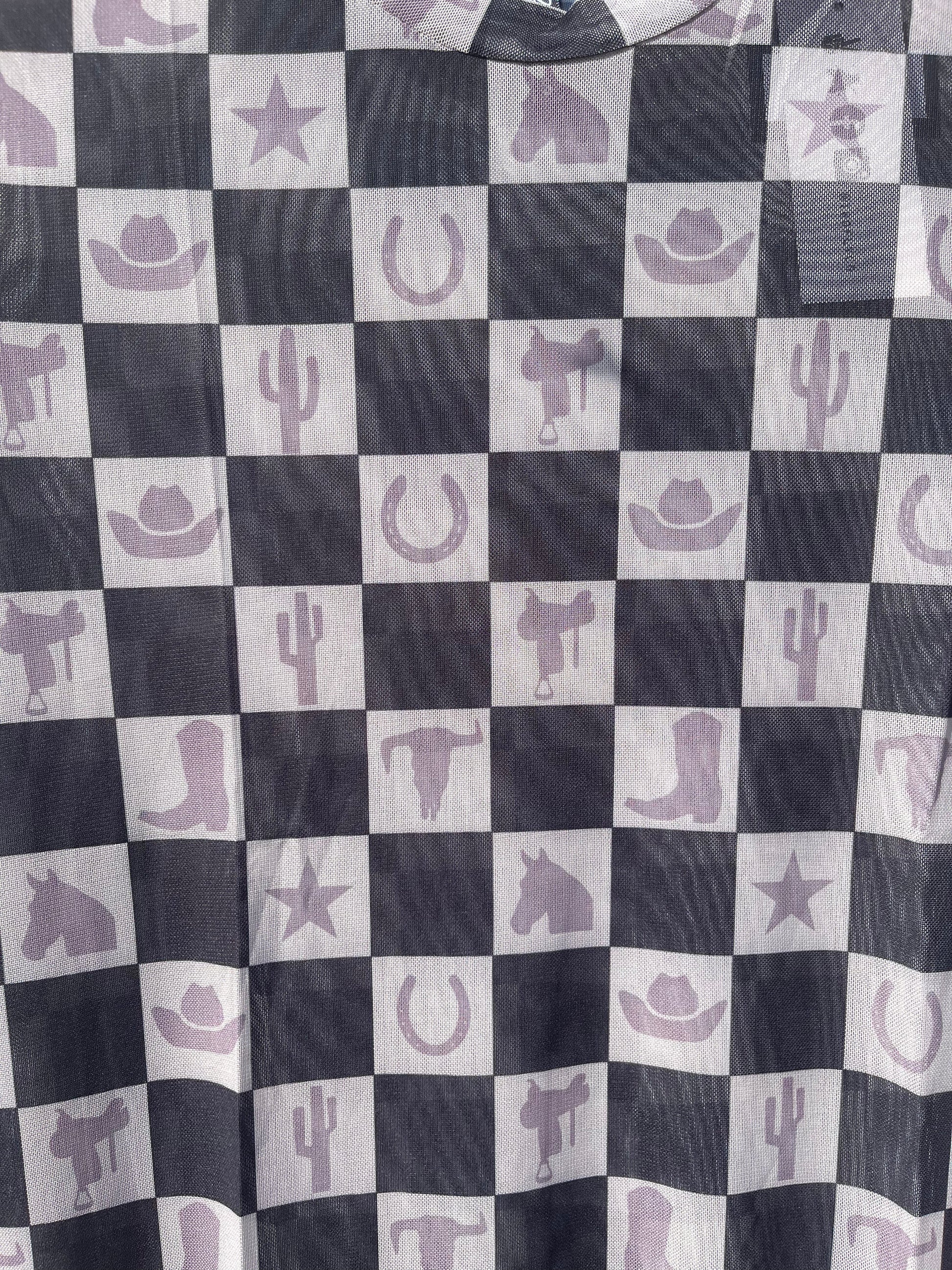 This western-style shirt is perfect for any wardrobe. It's made from a special mesh fabric, featuring a checkered print and western details. It's ideal for wearing over a t-shirt or blazer.